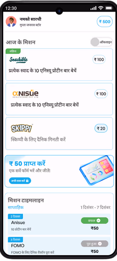 An app that empowers in-store workers to drive product sales through bite-sized sales missions and real-time rewards.